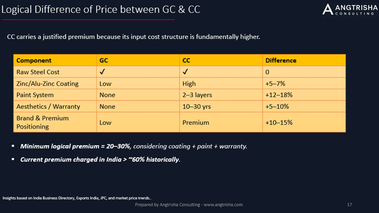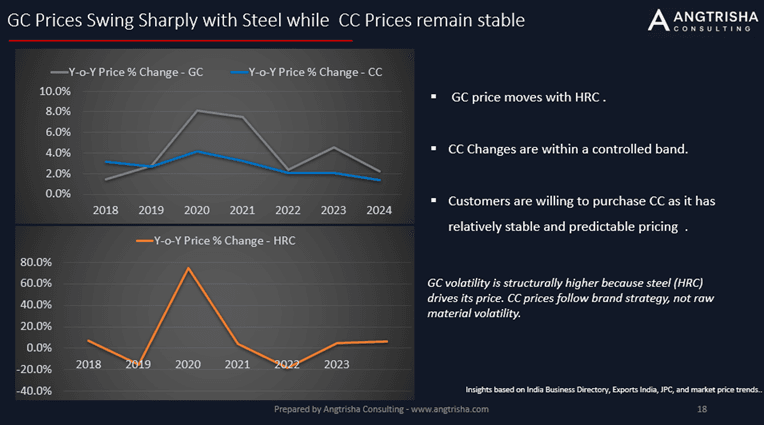 With industrial scaling, competition, and streamlined coating processes, the CC price curve is stabilizing — while GC still fluctuates with HRC steel prices.